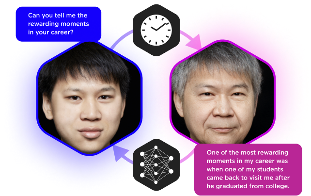 Envision and reflect on your future by chatting with an AI-generated version of your future self. Learn More
